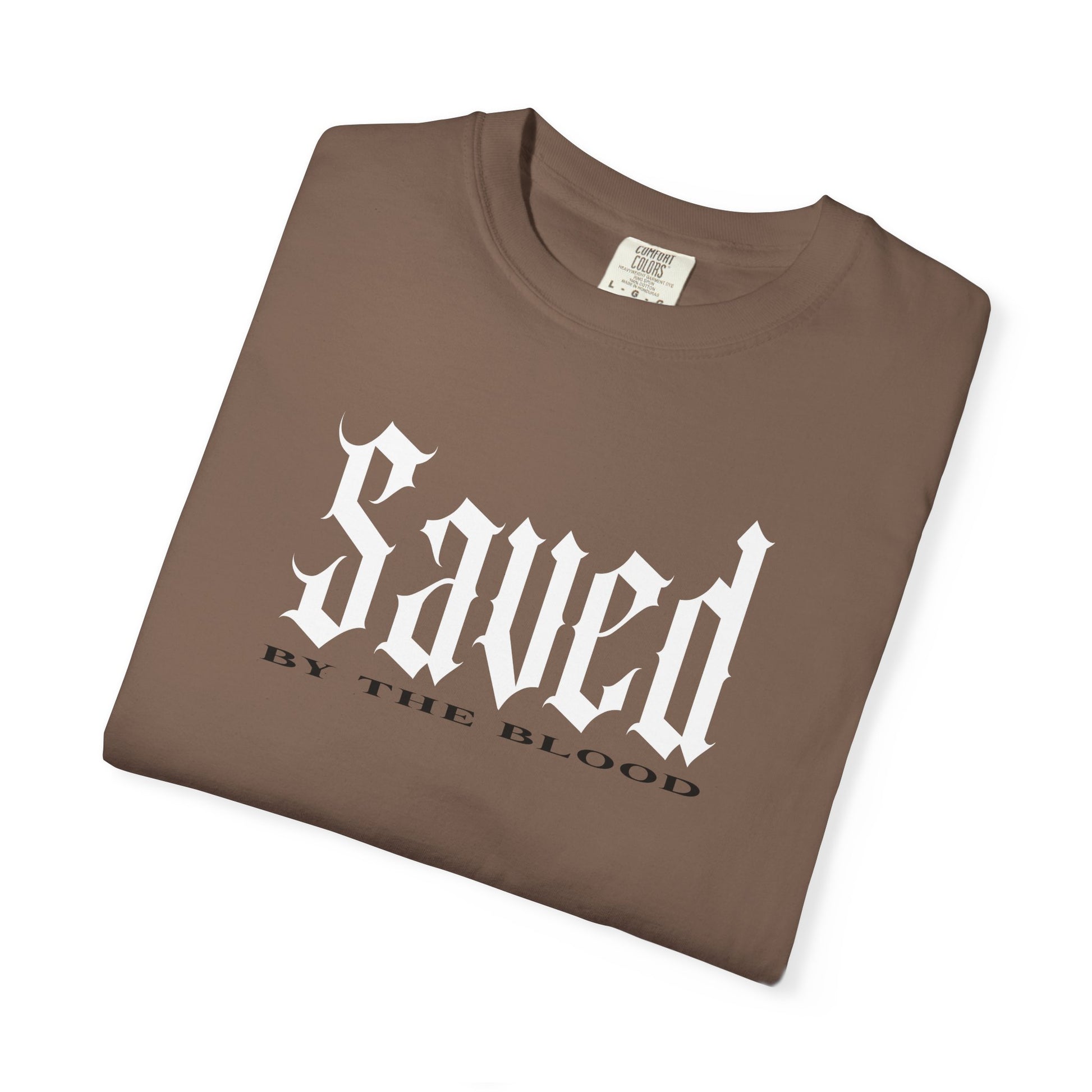 This Saved by the Blood t-shirt is perfect for those looking to bravely showcase their faith. Tell the world what Jesus did for you!